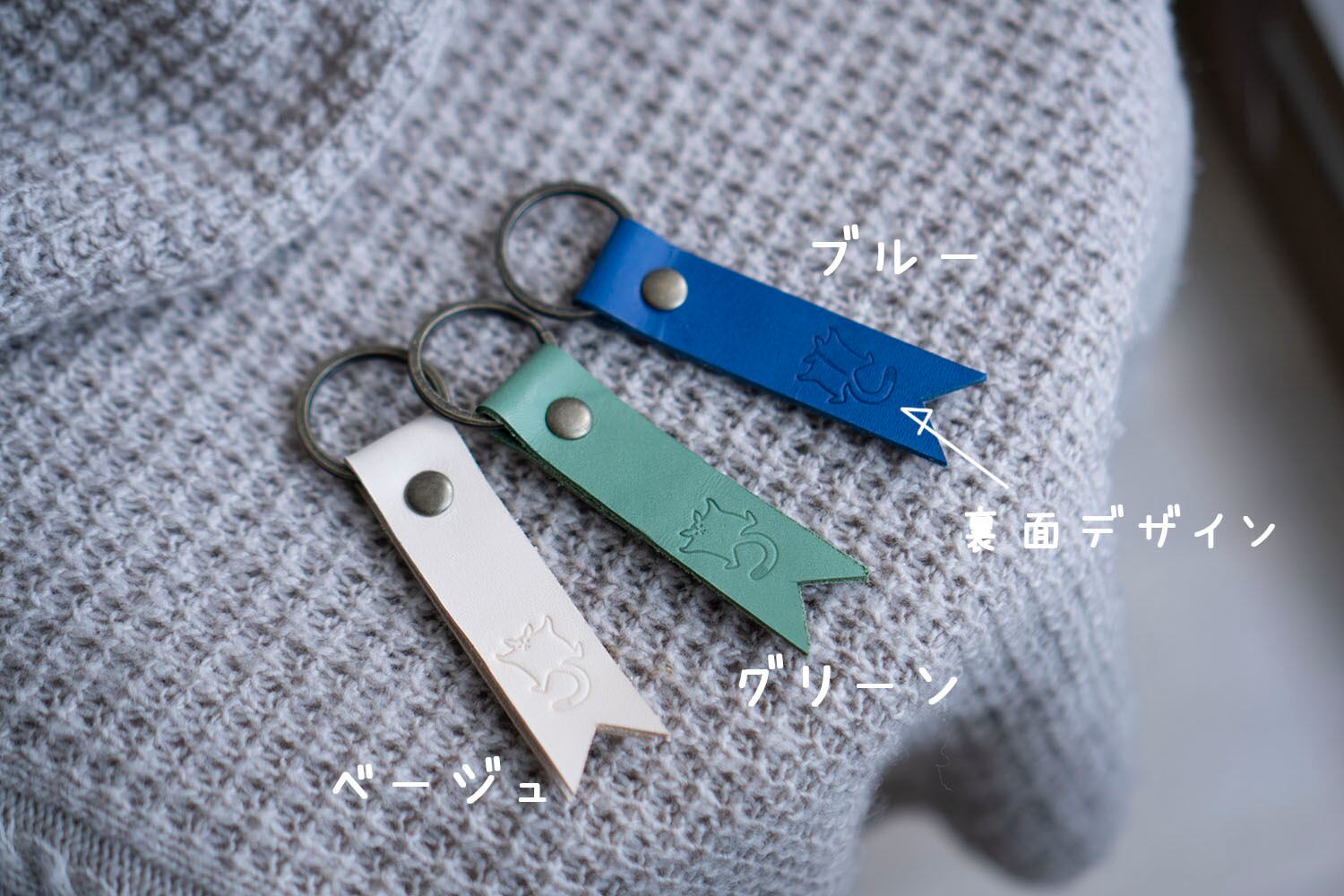 キーフォルダーの両面にフクロモモンガの正面、背面の姿を刻印したどちらの面も使っていただけるリバーシブルのデザインが特徴です。
