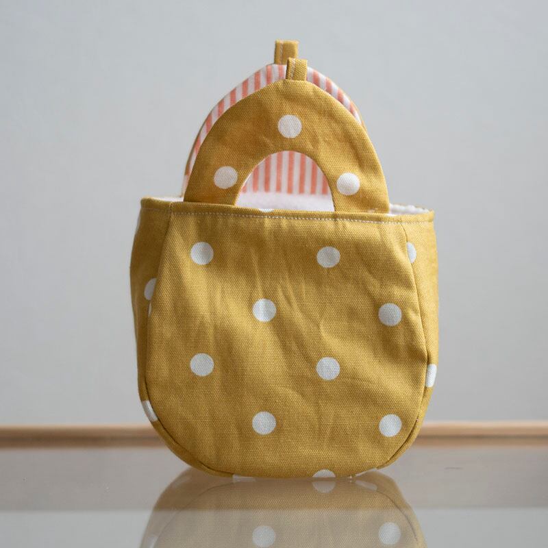 マチ付きで奥が広く、カバンのような可愛らしいシルエットが特徴的なデザイン。